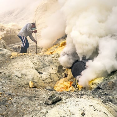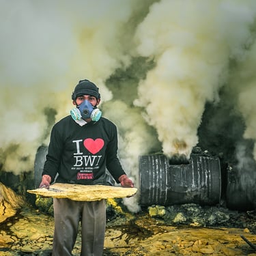 Through my lens, these miners appear both small and yet monumental. Their figures are shrouded in sulfuric mist, with each step seemingly a confrontation with the ultimate test of life and death. I've captured their silhouette drenched in sweat, their unwavering gaze, and the unwavering determination to endure for the sake of survival.