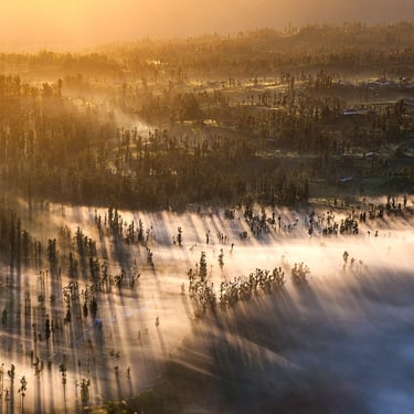 The crater of Mount Bromo has a diameter of about 800 meters and a depth of around 200 meters, forming a vast volcanic caldera known as the "Sea of Sand" or "Desert of Bromo". Visitors have the option to hike up Mount Bromo and witness the breathtaking sunrise from nearby viewpoints. During sunrise, the area around the crater is often shrouded in mist, creating a mystical atmosphere as the sun rises, casting mesmerizing orange hues over the landscape.
