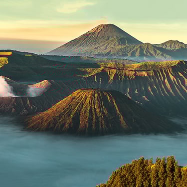 Mount Bromo is an active volcano located in East Java, Indonesia. It is one of the most famous volcanoes on the island of Java, situated within the Bromo Tengger Semeru National Park. With an elevation of approximately 2329 meters (7641 feet), Mount Bromo is renowned for its stunning crater and unique surrounding landscapes.